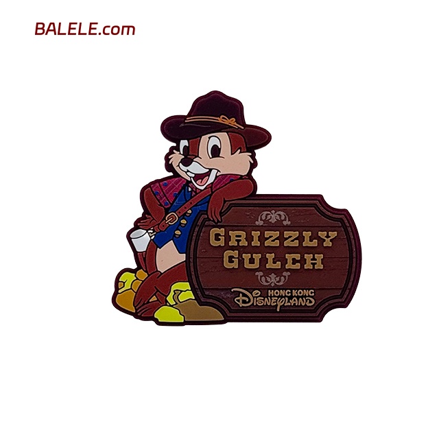 This vibrant Chip magnet is an official collectible from Hong Kong Disneyland’s Grizzly Gulch Collection, celebrating the park’s iconic Western-themed frontier land.